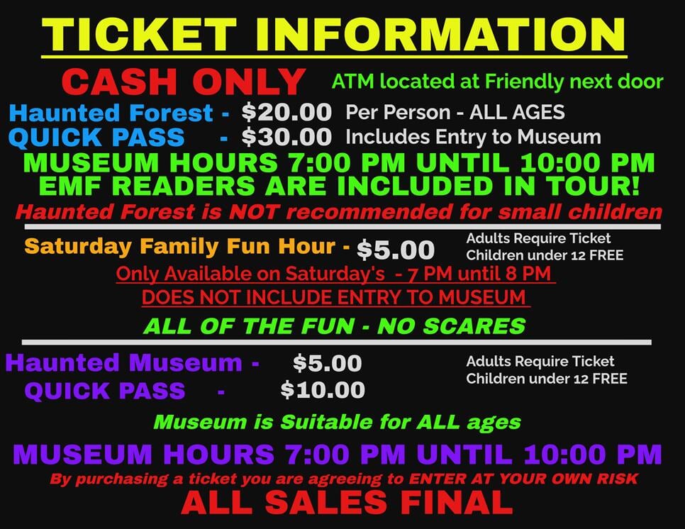 Hours of Operation: Haunted Forest: 8 pm - 11 pm